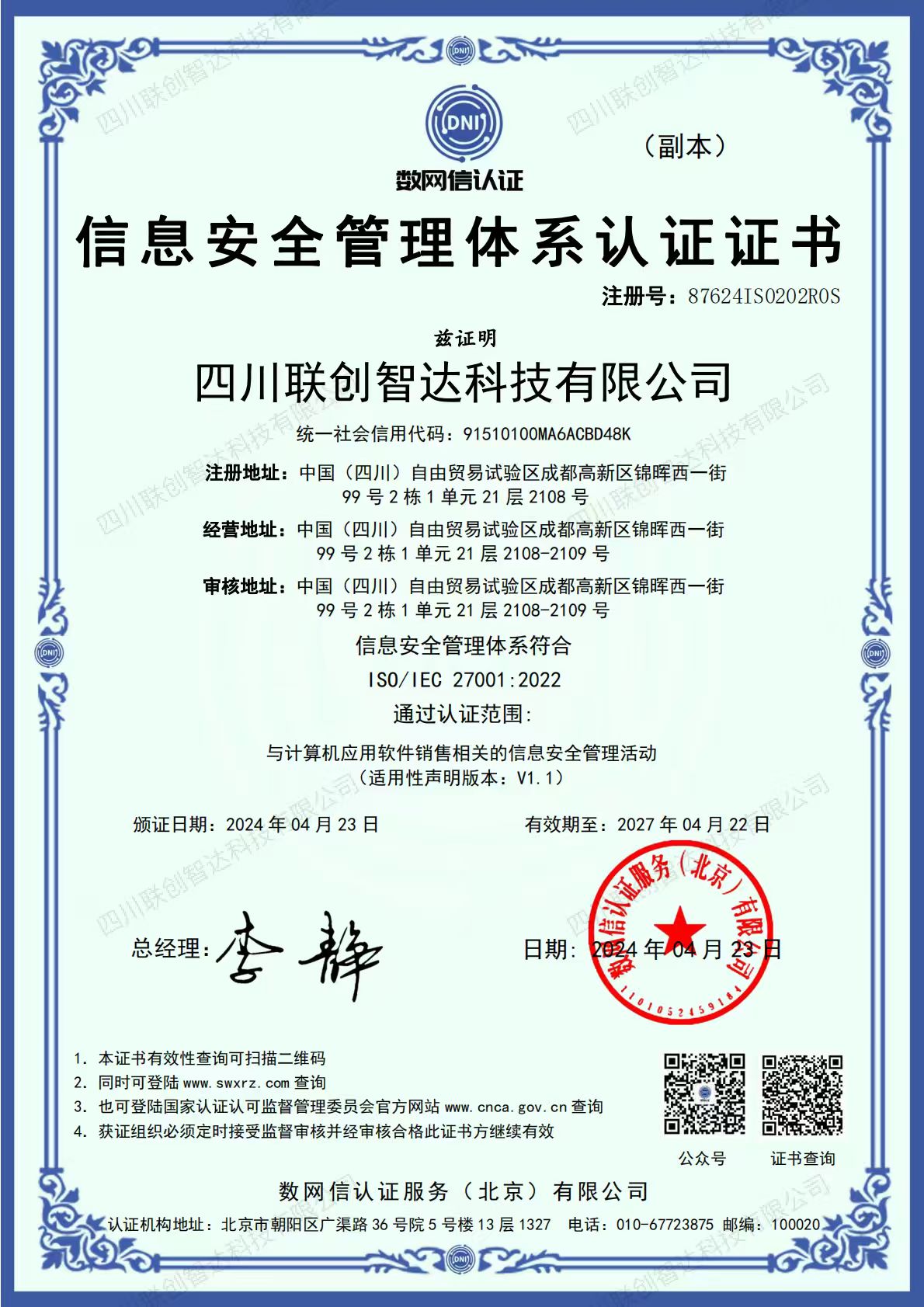 四川联创智达科技有限公司成立于2019年,专注于医疗信息化服务与创新,产品包括HIS、EMR、LIS、PACS、DRG\DIP、医保智能审核等。通过技术创新和数字化转型,推动医疗行业的发展和变革,实现健康医疗的可持续发展。提高医院的工作效率,改进医疗服务质量。 公司先后取得国家级高新技术企业、创新型中小企业、质量管理体系认证证书(ISO9001)、信息安全管理体系认证证书(ISO27001)、信息技术服务管理体系认证证书(ISO20000)、成都高新区雏鹰企业、第二类医疗器械销售许可证等资质,四川省基层医疗卫生机构管理信息系统生态圈入围厂家之一,拥有45项具备自主知识产权的软件产品和软件著作权,为全国500多家医疗机构提供了稳定、可靠的医疗信息化解决方案与服务。